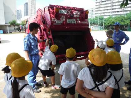 「パッカー車体験」と「ゴミの分別について」の授業です。