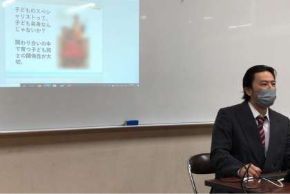 パニック状態になった子どもへの具体的な対応とともに、すべての子ども達が共存する地域社会についてのお話をしていただきました。