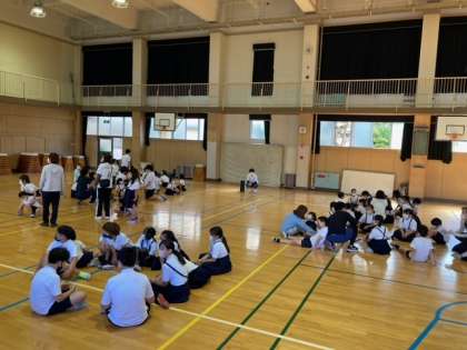 集会の最後には来週の「なかよしドッジボール集会」の作戦会議。たてわり班で「外野」決めをしました。ほかの班の作戦も気になります。