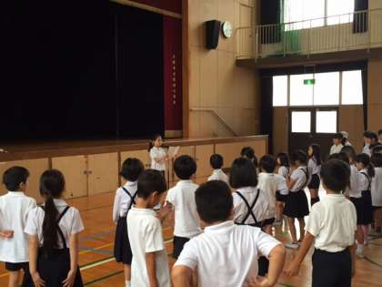 校長先生の話や、児童会代表のスピーチ、水泳学習での注意事項などの話がありました。