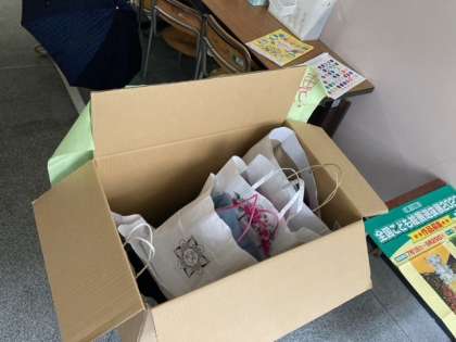 2枚目:校長室前の箱にも続々と着なくなった服が届いています。ありがとうございます。