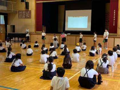 校長先生のお話の後、各学年から一人ずつ前にでて1学期頑張ったこと、心に残っていることを発表しました。