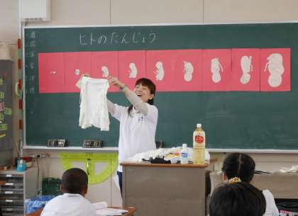 今回は出産直前の赤ちゃんの様子から誕生までの授業をしました。