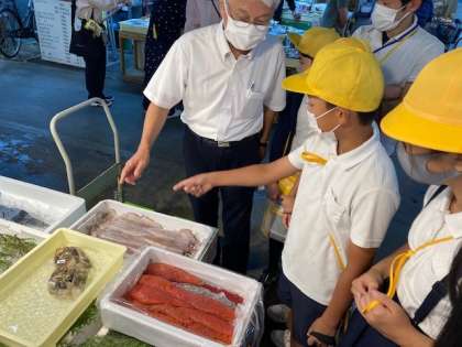 5年生は、学校近くの木津市場を見学させてもらいました。市場の中の魚やさんをまわり、サメの肌に触れたり、セリの体験も。大阪湾の魚のお話や、ちりめんモンスターで学びを深めました。お忙しい中ありがとうございました。