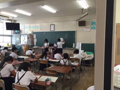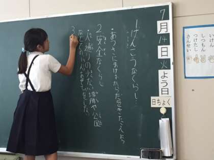 昨日は、夏休みに向けて地区別児童会が行われました。6年生の司会で、夏休みの目標や「しきつのきまり」の確認をします。