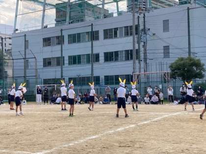 1・2年生「きつねダンス ゲットだぜ」「ダンシング玉入れ」