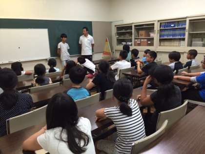 これから、一緒に泊まっている平尾小学校との対面式を食堂で行い、朝ごはんを食べます。