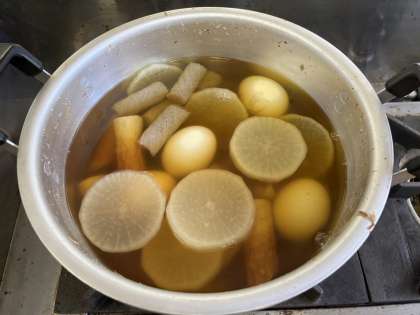 昨年度できなかった分と、今年度の学習内容を組み合わせて考えた結果、おでんを作ることになりました!だしもとれ、ゆで卵も作れ、じゃがいもも使う!!