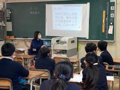 今日の児童集会は放送で行いました。委員の人が出すクイズに教室から元気に答えていました。