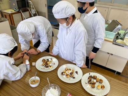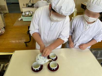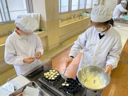 5年最後の調理実習は、たこ焼き器でベビーカステラを作りました。仕上げは、みんな思い思いにトッピング。1学期に学習したお茶の入れ方も実践。温かいお茶とカステラがよく合います。みんなで“ほっと”楽しい時間を過ごしました。