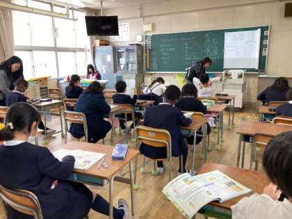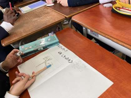 4年生理科。1年間自分が観察するものを校庭に出て選んだ後、観察カードにはどんな事を書けばいいのかな?とグループで意見を出し合いました。植物(動物)の名前…場所…日付……。たくさんの意見が出ていました。