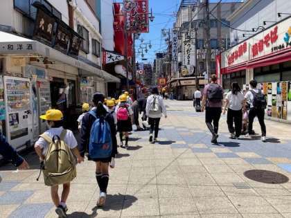6年生を先頭に縦割り班で歩いて学校へ向かいました。