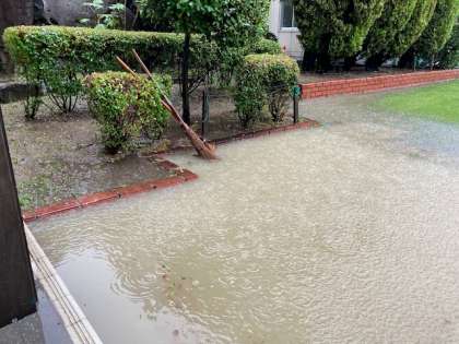 管理作業員さんには1階の廊下が滑らぬよう何度も水切りをしていただきました。