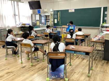 今週は順に全学年でお話を聞きます。写真は2年生。
