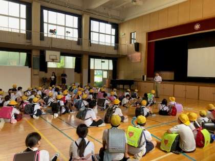 台風接近に伴う集団下校を想定した避難訓練を実施しました。