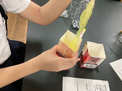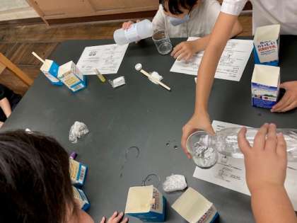 科学クラブはスライムを作成中。すぐにできた班も。