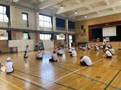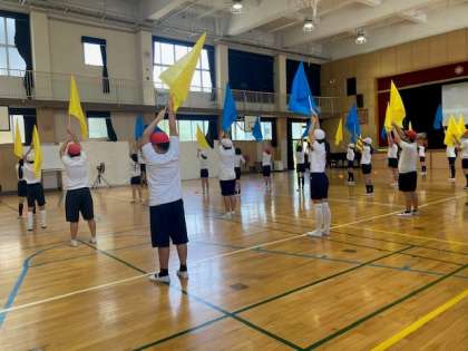 今日から運動会の団体演技、フラッグの練習が始まりました。並び方、フラッグの持ち方をききました。