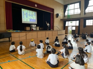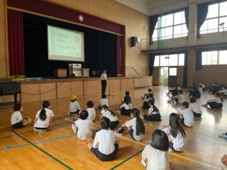 児童朝会では、教師養成講座現場実習をする学生さんの紹介がありました。