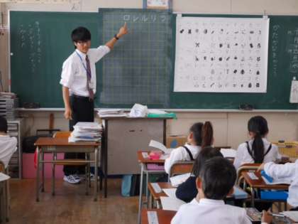 1年生の賀集先生は、カタカナの授業です。書き方のポイントを確認した後、読みの力をつけるための「カタカナかるた」で盛り上がりました。