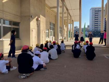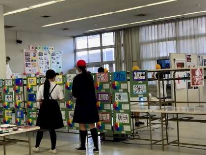 6時間目、6年生は木津中学校の文化祭展示作品を大国小学校と一緒に鑑賞しました。