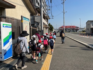 2年生が1年生と手をつなぎ、しっかりサポートしています。