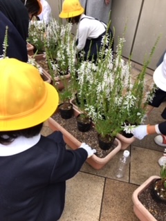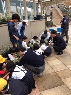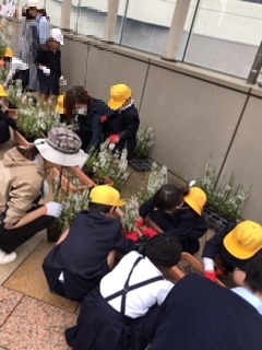 1・2・3年生がなんばパークスで花の植付けをしました。