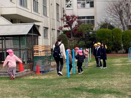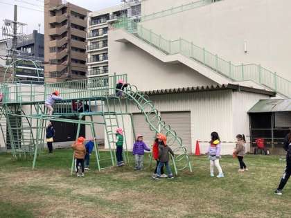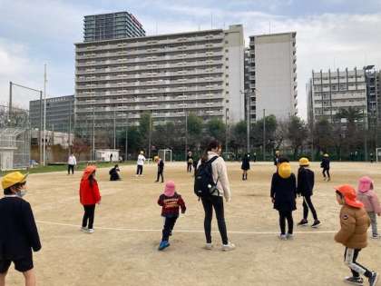 グローバルキッズ戎本町園の4,5歳児が校庭に遊びに来ました。