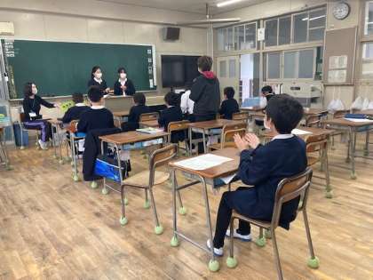 今年度最後です。地区ごとに集まり、6年生が最後のご挨拶をし、5年生の新しいリーダーが決まりました。5年生4月からよろしくね。