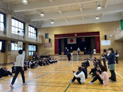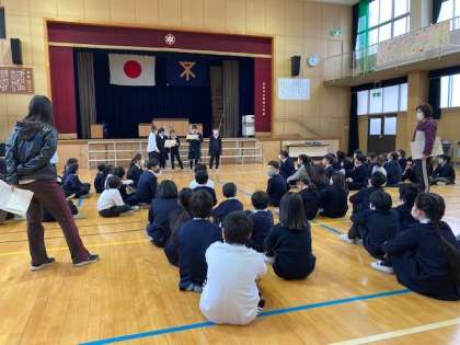 今日の1時間目は代表委員児童の考えたお祝いの会です。6年生が入場してきました。