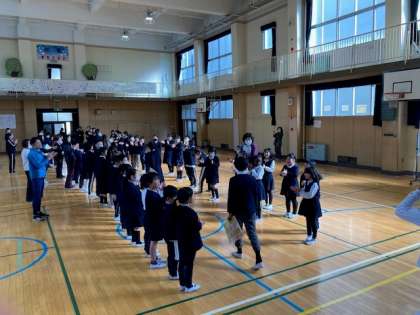 みんなで校歌を歌い、在校生のつくった花道の中、6年生は退場していきました。「6年生ありがとうございました」の声も。