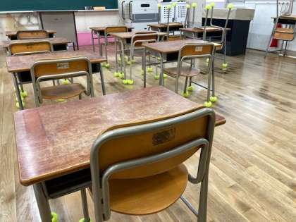 春休み中、教室の床にワックス塗装がはいりピカピカに。