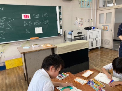 5月5日に向けてこいのぼりを作成中。クレパスで彩ります。