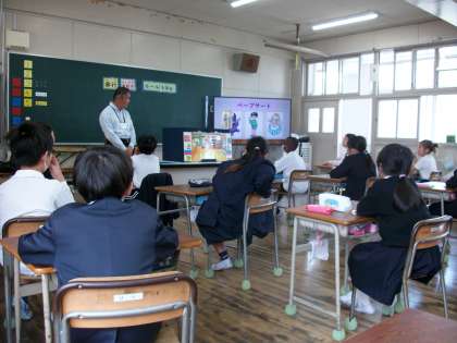 難波少年サポートセンターよりお越しいただき、万引きやいじめ、声掛け事案他について、わかりやすくお話しいただきました。
