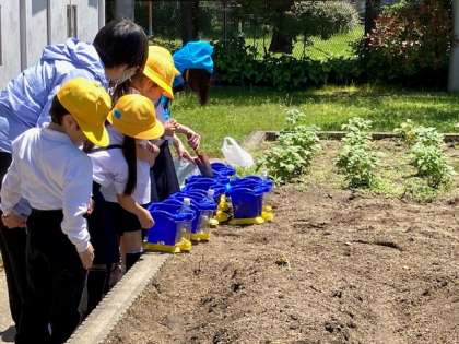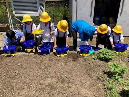 いよいよ朝顔を植えました。何色の花が咲くか楽しみです。お水やりを頑張りましょう。