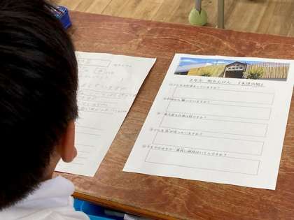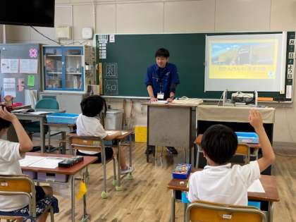 町たんけんで、訪問を計画していましたが、市場が外国からの観光客でたいへん混雑しているとのこと、わざわざ「出前授業」に来てくださり、質問にも丁寧に答えてくださいました。お忙しい中ありがとうございました。