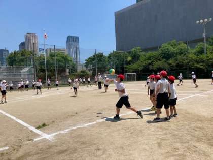 6年生が低学年にボールを回したり、ひとりひとりに「大丈夫?」と声をかけたりしている姿が素敵でした。