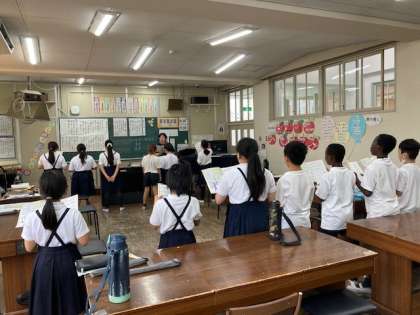 2部合唱がきれいに響きます。大人っぽいきれいな声の曲、そして元気いっぱいのドラえもん。来週木曜日は音楽集会。この調子でがんばって!