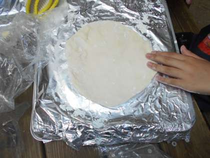 ピザ生地を丸く伸ばして、いい感じです!