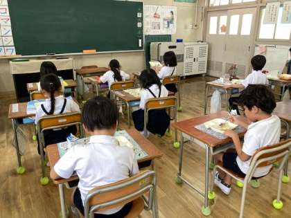 今日は1・2年生一緒に楽しく給食を食べていました。