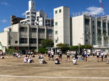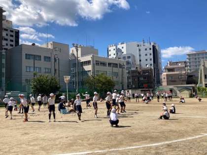 全校で玉入れとダンスの練習をしました。はじめて運動場で並んだので自分の場所も確認しました。