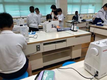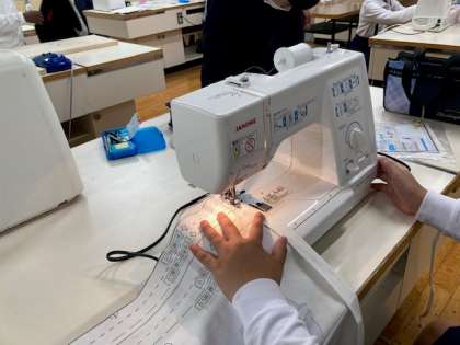 エプロンを縫っています。ひとりでミシンをうまく扱えていました。