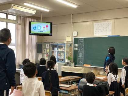 アニメーションに合わせて立ったり座ったりしゃがんだり、楽しく英語を学びます。