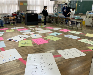 2年生の床には大きなすごろくが。学んだことが順に記されています。
