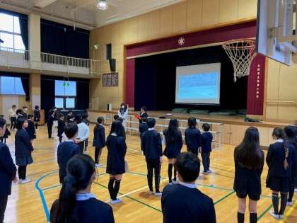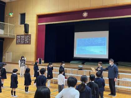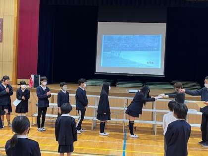 校長先生のお話に続き、読書感想文や「すこやかしきつ」の表彰、代表委員から生活目標「身のまわりをきちんとしよう」の伝達がありました。