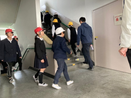 の放送が入り、全員あわてず3階以上に避難することができました。