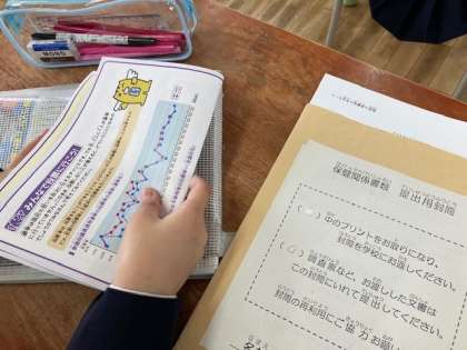 新しい学年でいつもより少しよそいきの顔をしている人も。配付物がたくさんあります。お話をよく聞いていきましょう。