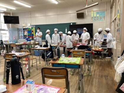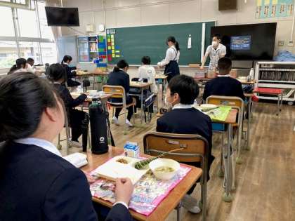 6年生は1年生の準備を手伝った後、自分たちの給食の準備です。