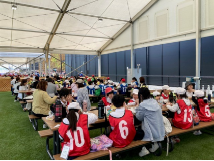 昼食は指定の会場です。まだ12時前ですがみんなおなかがペコペコでした。
