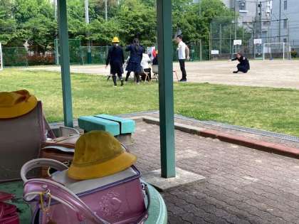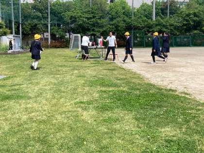 代表委員の児童は運動場に集合して運動会に向けて練習します。