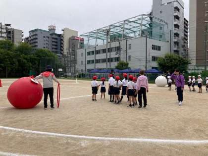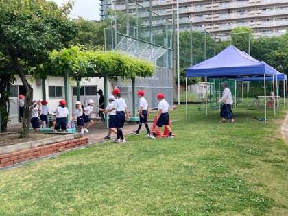 123年生、藤棚の下でお茶休憩をとりながら、練習がんばっています。